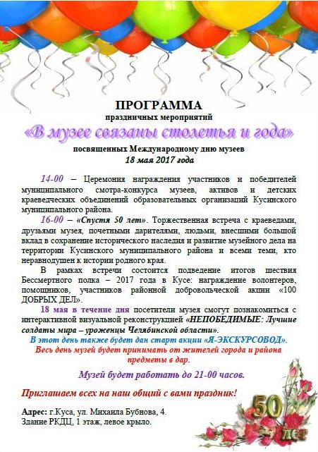 Программа празднечный мероприятий "В музее связаны столетья и года"